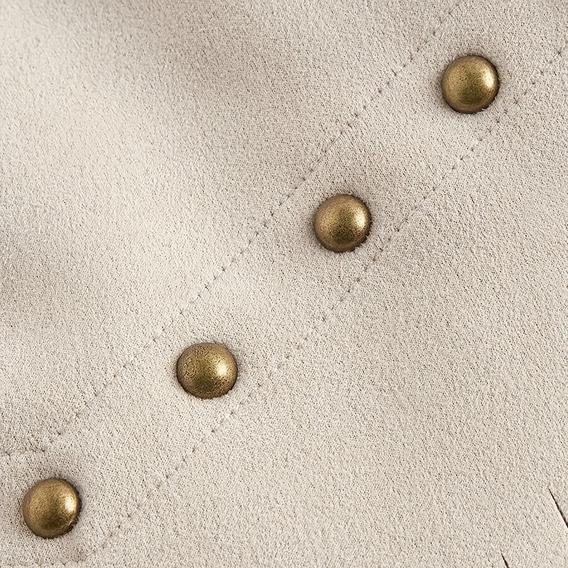 Los fleco en el bajo añaden ese toque divertido y rústico, mientras que los botones decorativos completan el efecto vaquero moderno. El tejido es cómodo, ligeramente elástico y mantiene la forma durante todo el día.